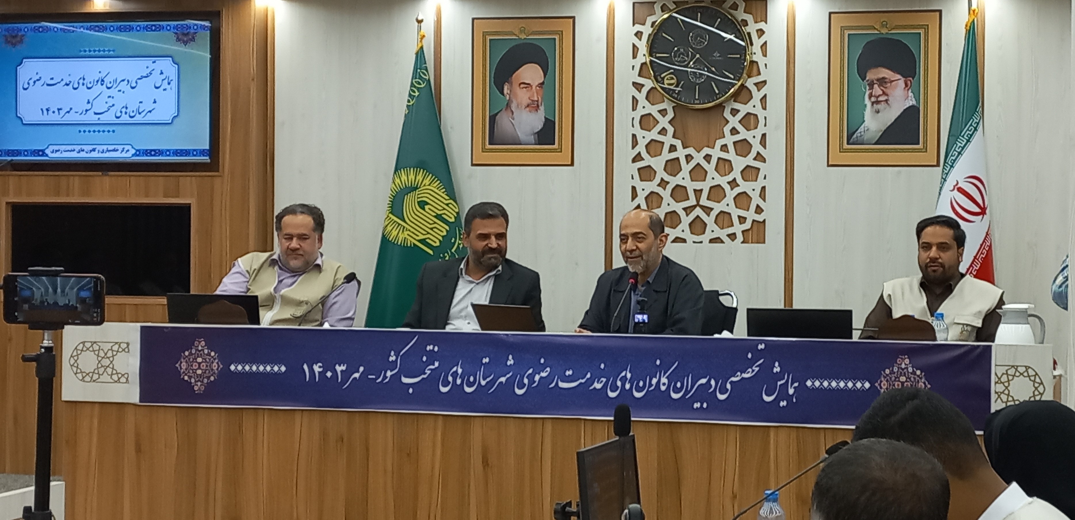 همایش تخصصی تخصصی دبیران کانون های خدمت رضوی شهرستان های کشور در دو گروه یک گروه در تاریخ های 18 و 19 و گروه دیگر در تاریخ های 25 و 26 مهر ماه 1403 در سالن جلسات زائرسرای حضرت رضا علیه السلام در مشهد مقدس برگزار شد.