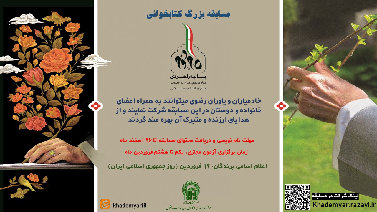 مهلت نام نویسی و دریافت محتوای مسابقه:تا 26 اسفند ماه